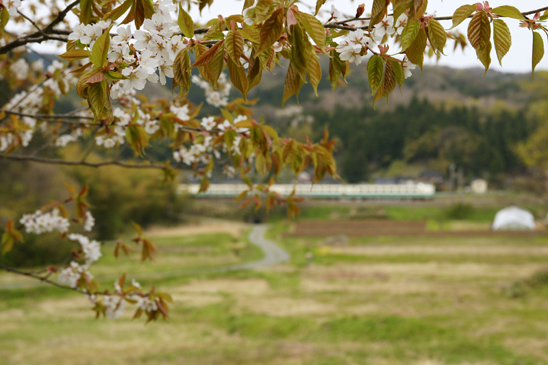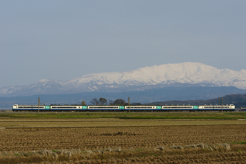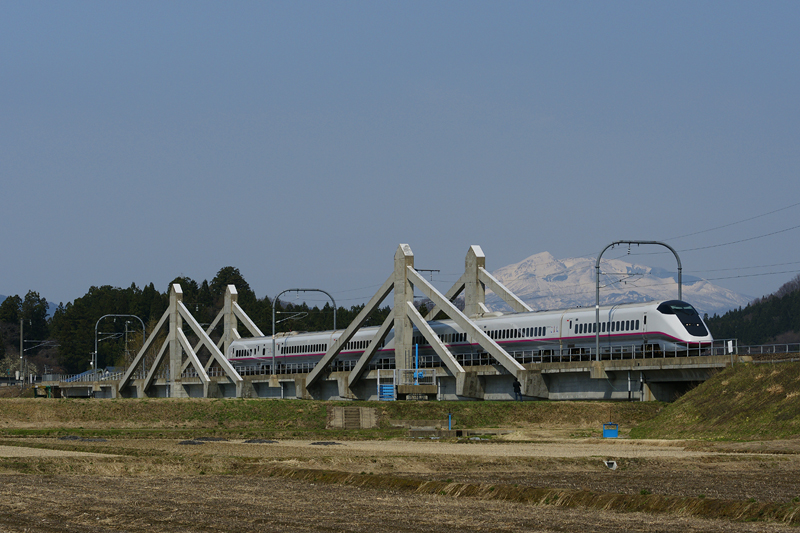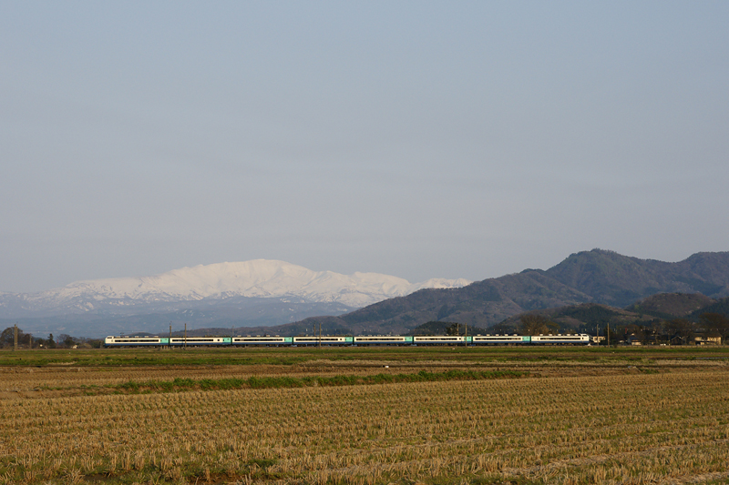 鶯野で、秋田駒ヶ岳をバックにE3系!